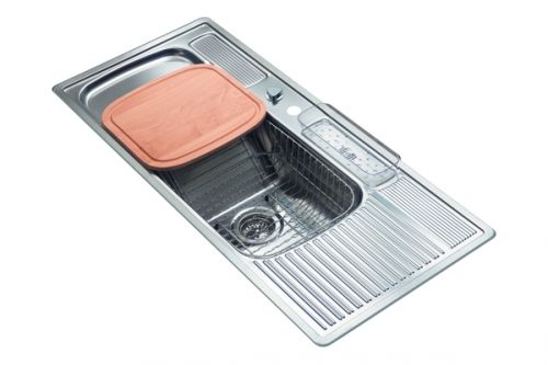 Комплектация: деревянная разделочная доска S1100, стальная корзина R1140, пластиковый коландер R1030, дистанционный выпуск.