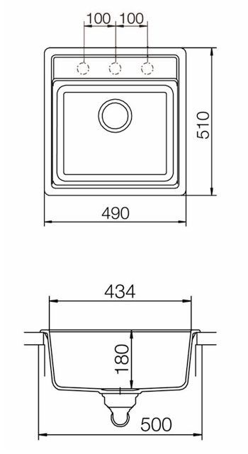 Отводная арматура с переливом и сифоном с возможностью подключения посудомоечной или стиральной машины.