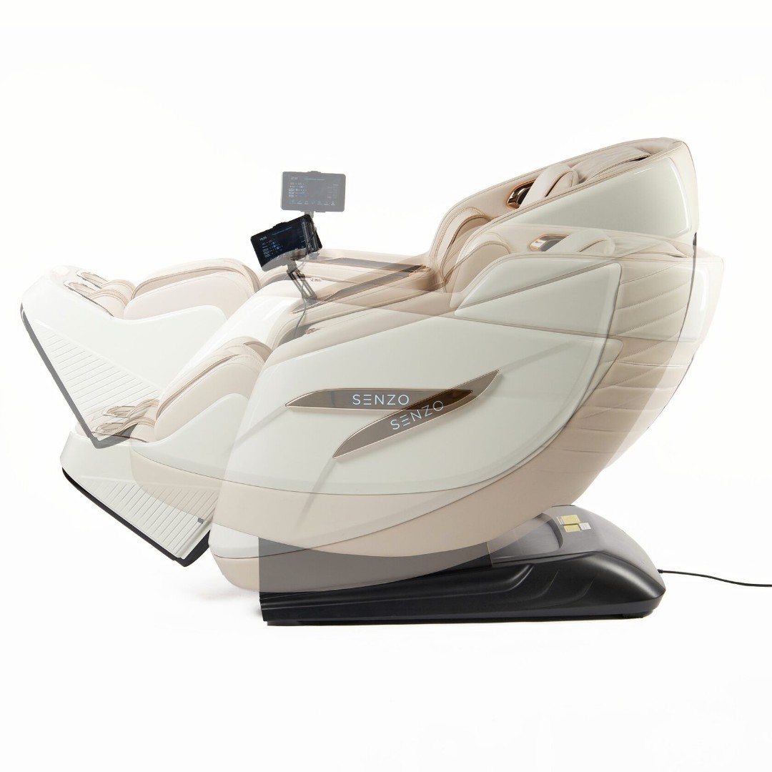 В отличие от обычных кресел с одним механизмом, перемещающимся по каретке вверх и вниз, Senzo Unkai оснащено двумя независимыми механизмами (4D в области плеч и спины и 3D в области ягодиц), которые оборудованы шестью массажными роликами.