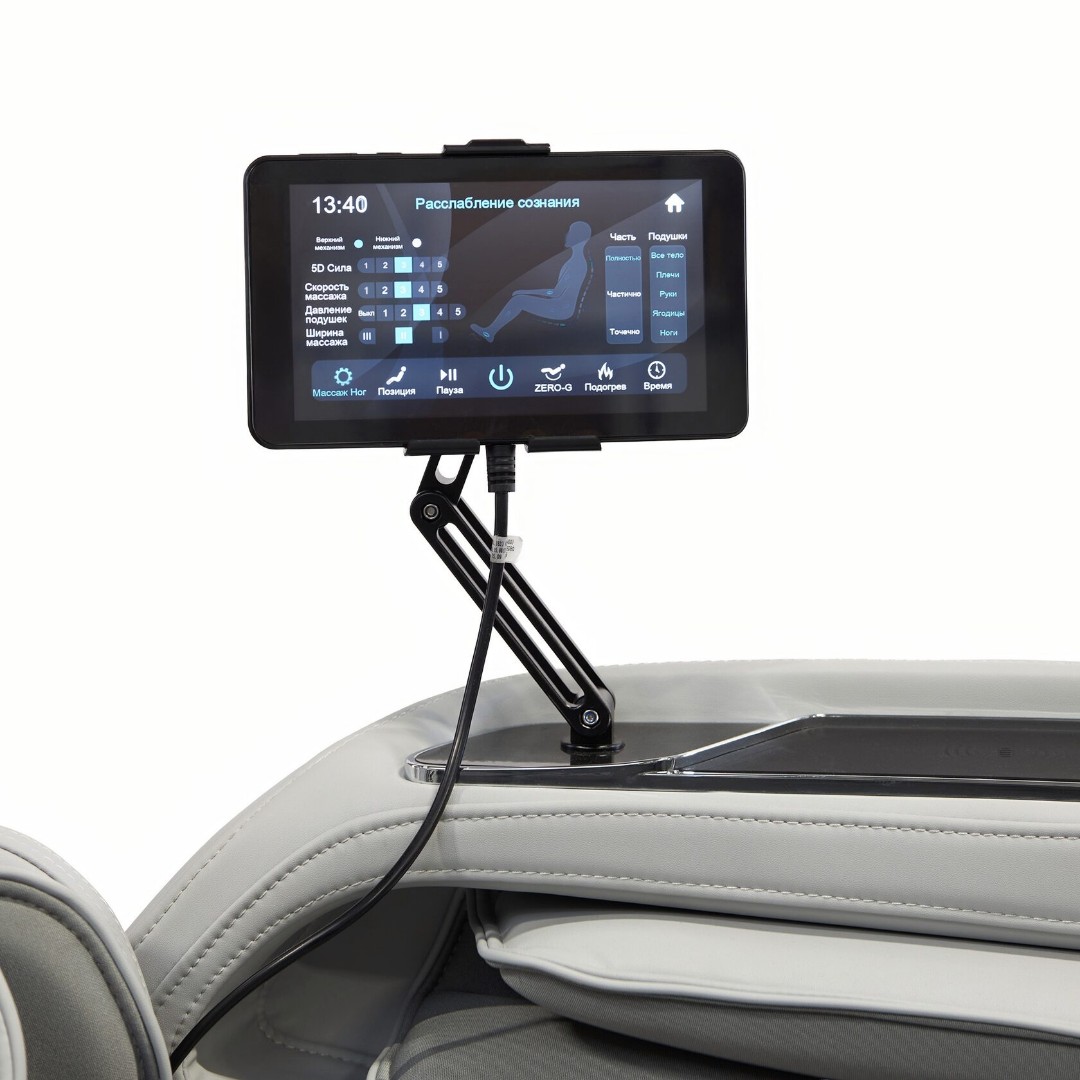 - Эргономичная конструкция подлокотников обеспечивает оптимальный угол наклона и естественное положение рук, создавая максимальный комфорт во время массажа
