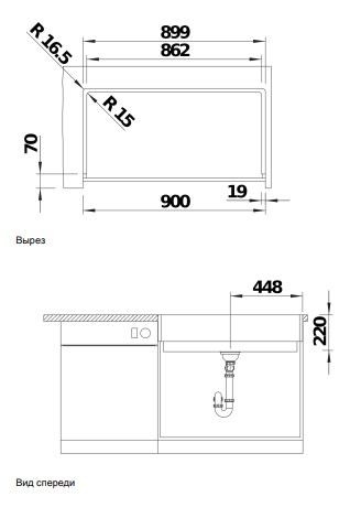 - Идеальное сочетание: фронтальная видимая стенка мойки подходит для шкафа шириной 90 см