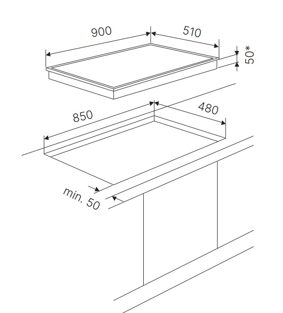 - В варочных панелях на скрытой части, которая находится под столешницей