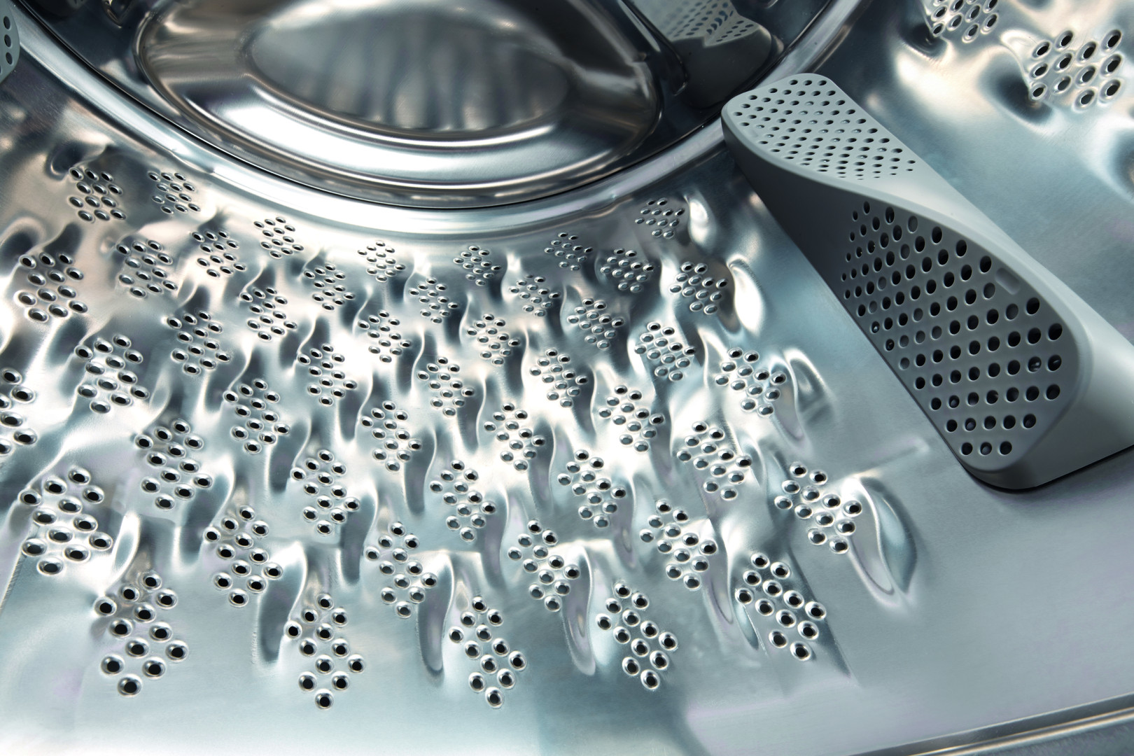 Новая волновая перфорация барабана в сочетании с особой волнообразной формой 3D-ребер смягчает волокна, что обеспечивает более бережный уход за одеждой, позволяет добиться безупречного качества стирки и свести к минимуму образование складок.